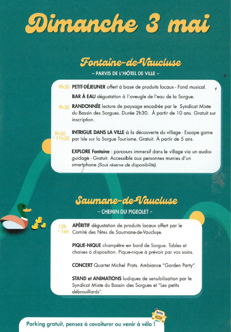 Découvrez le programme complet du weekend des 2 & 3 mai 2026 du Festival de la Sorgue !